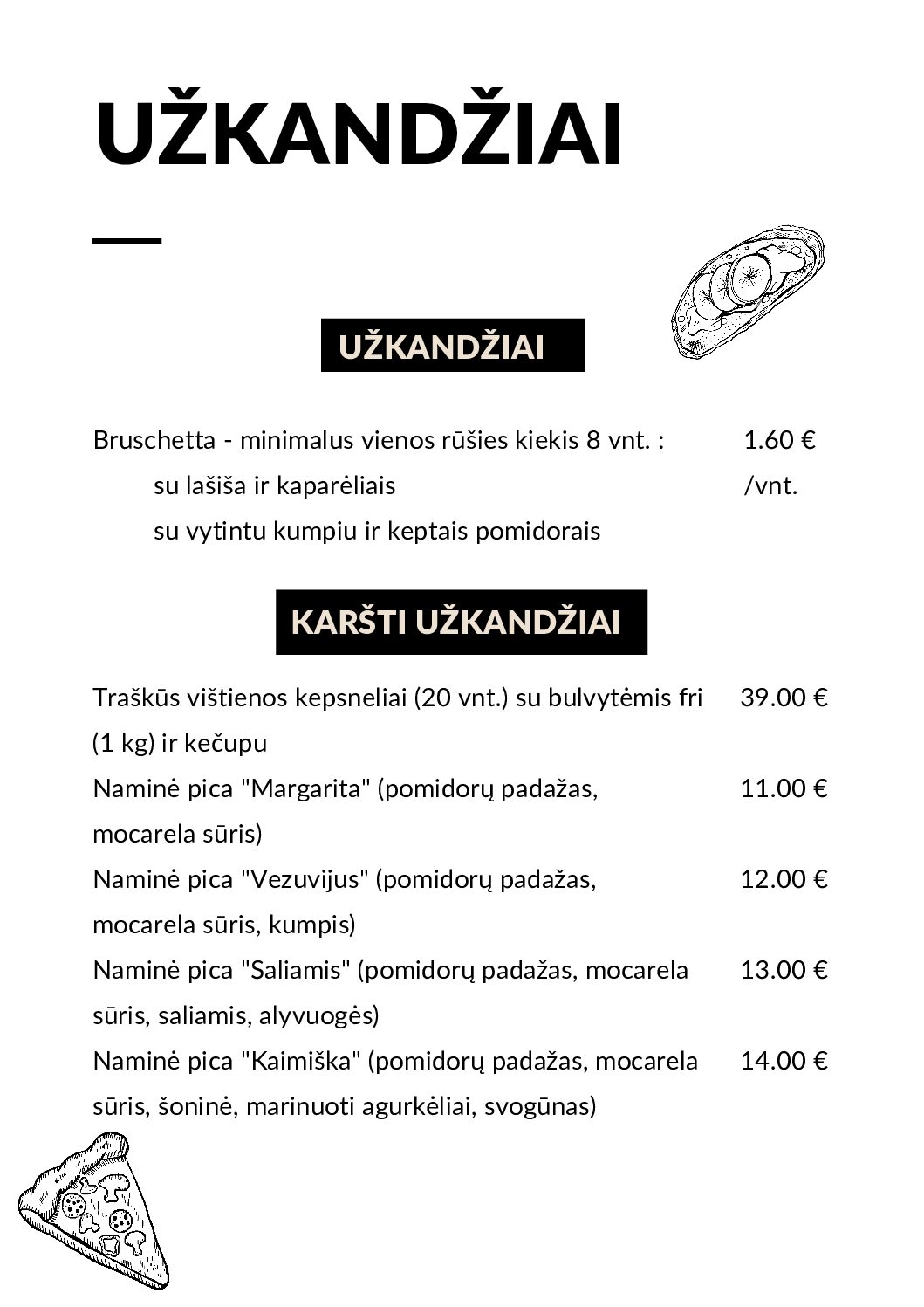 Kikilio lizdas | Meniu